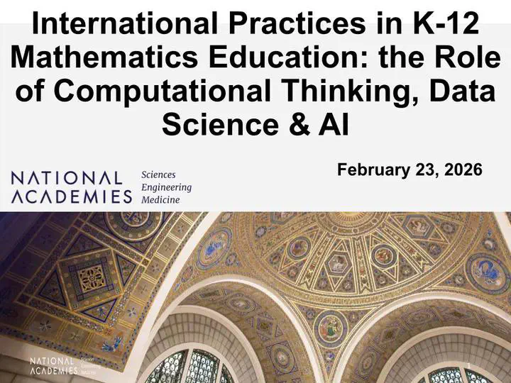 As a member of the Planning Committee for the Workshop and Webinar Series on International Practices in K‑12 Mathematics Education: The Role of Computational Thinking, Data Science, and AI (2025–2026), organized by the National Academies of Sciences, Engineering, and Medicine (NASEM), I have been actively involved in shaping an international exchange on the modernization of mathematics curricula worldwide.